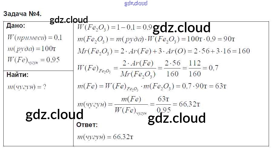 Ответ на задание задача №4 Учебник Химия за 9 (девятый) класс Рудзитис, Фельдман УМК 2016