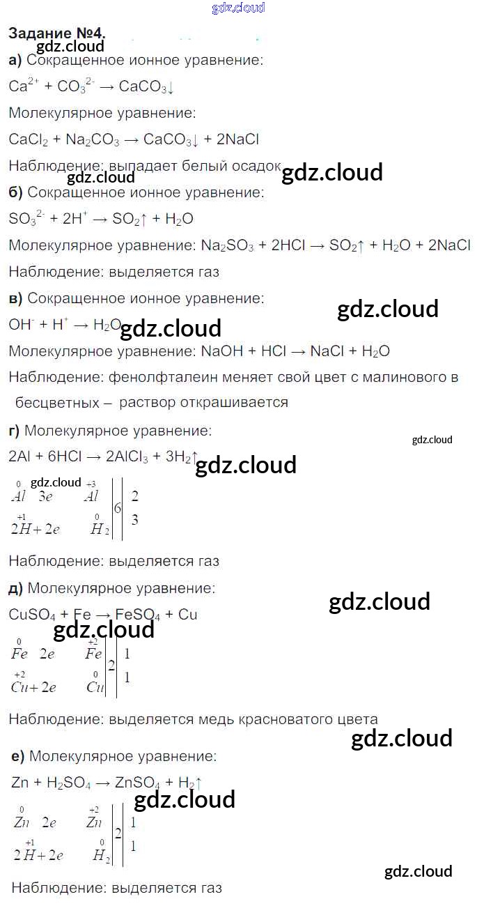 Ответ на задание задание №4 Учебник Химия за 9 (девятый) класс Рудзитис, Фельдман УМК 2016