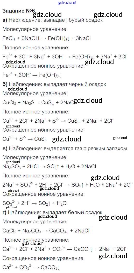 Ответ на задание задание №6 Учебник Химия за 9 (девятый) класс Рудзитис, Фельдман УМК 2016
