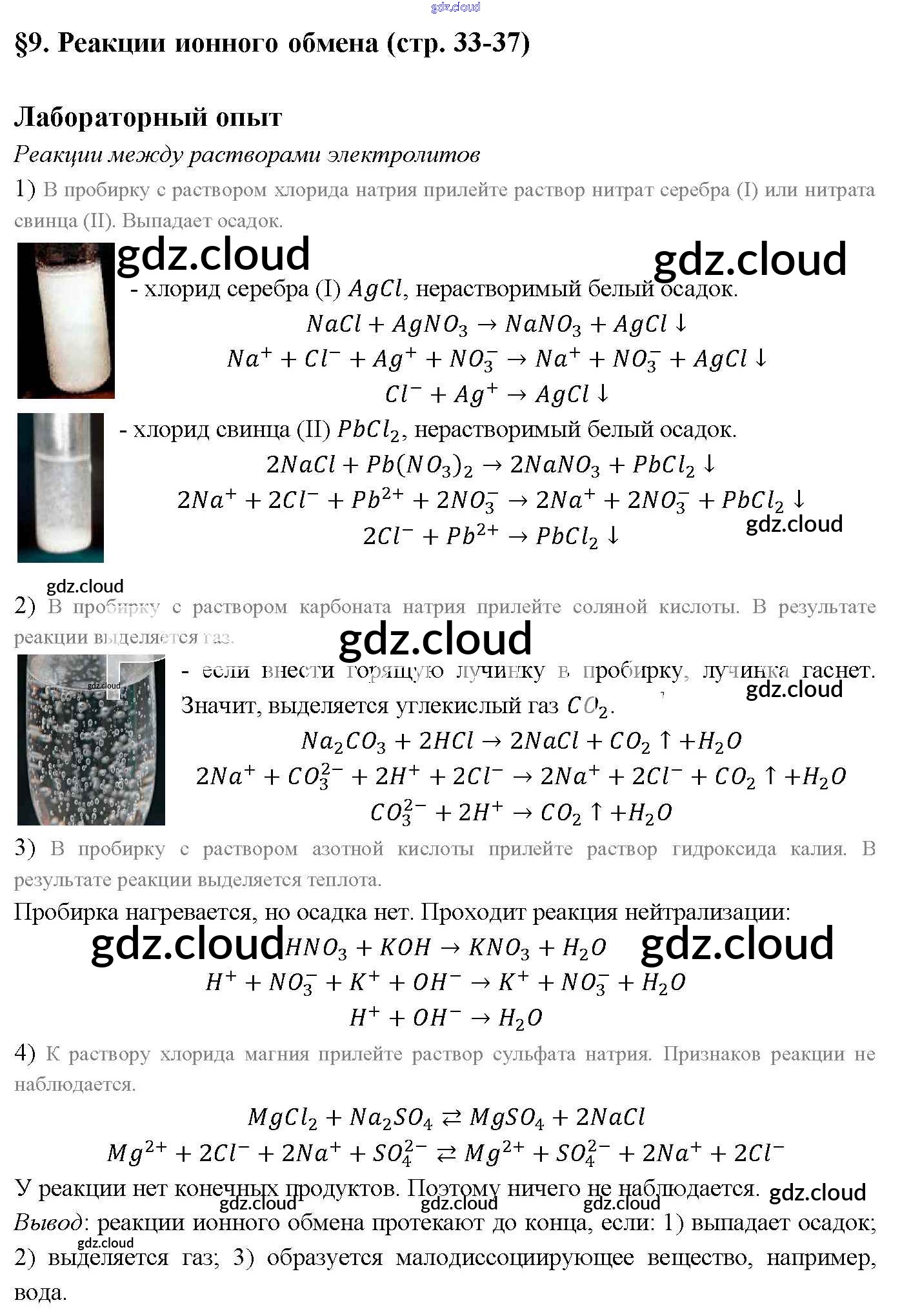 § 9. Реакции ионного обмена Ответы к новому изданию по Химии 9 класс Учебник Рудзитис УМК Просвещение