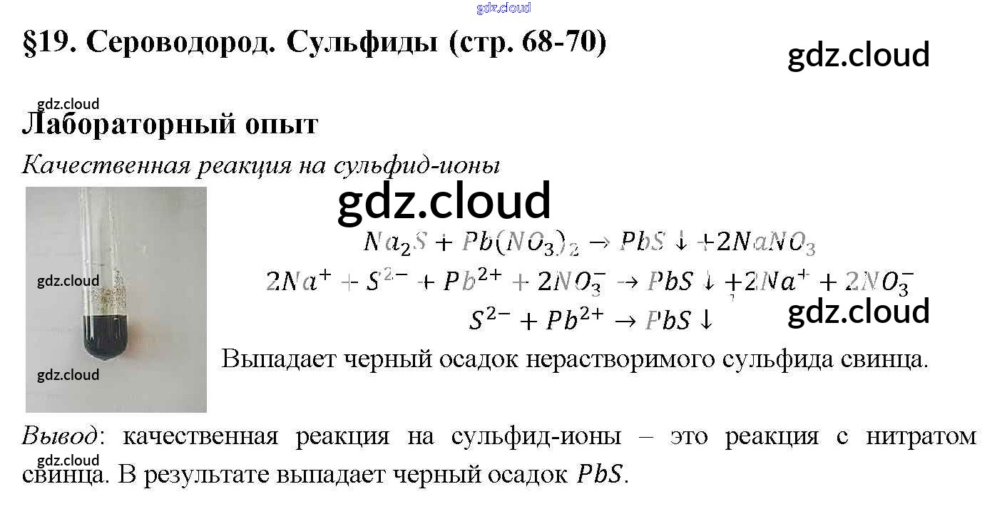 § 19. Сероводород. Сульфиды Ответы к новому изданию по Химии 9 класс Учебник Рудзитис УМК Просвещение