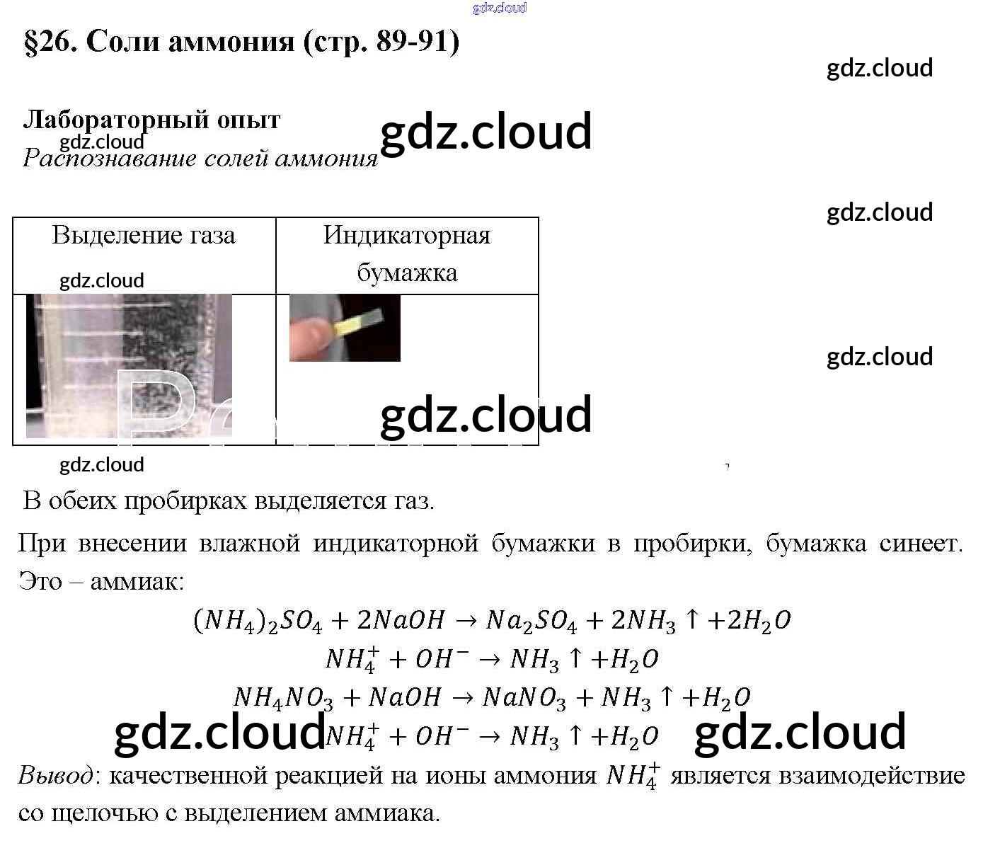 § 26. Соли аммония Ответы к новому изданию по Химии 9 класс Учебник Рудзитис УМК Просвещение