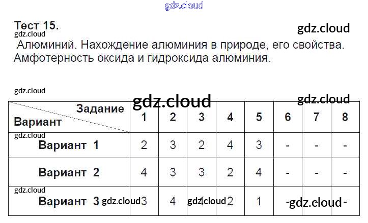 Ответ на задание Тест-15. Алюминий. Нахождение алюминия в природе, его свойства Тесты Химия за 9 (девятый) класс Боровских УМК 2013