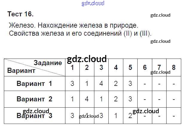 Ответ на задание Тест-16. Железо. Нахождение железа в природе Тесты Химия за 9 (девятый) класс Боровских УМК 2013