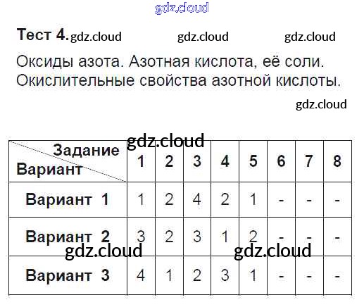 Ответ на задание Тест-4. Оксиды азота. Азотная кислота, её соли Тесты Химия за 9 (девятый) класс Боровских УМК 2013