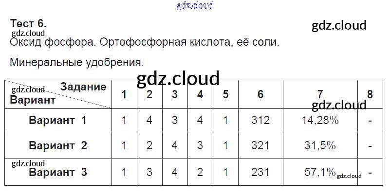 Ответ на задание Тест-6. Оксид фосфора. Ортофосфорная кислота, её соли Тесты Химия за 9 (девятый) класс Боровских УМК 2013