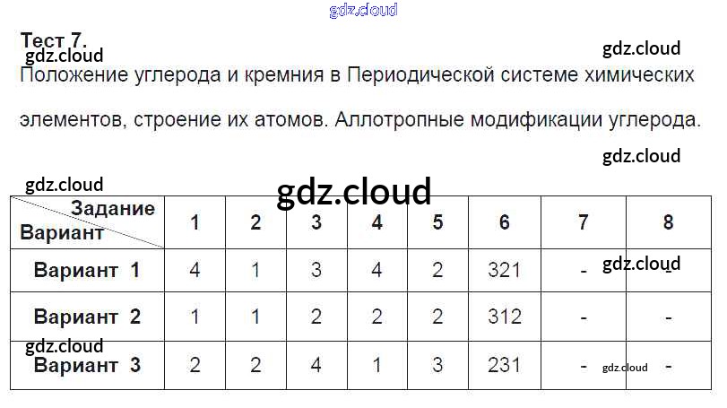 Ответ на задание Тест-7. Положение углерода и кремния в Периодической системе химических элементов Тесты Химия за 9 (девятый) класс Боровских УМК 2013