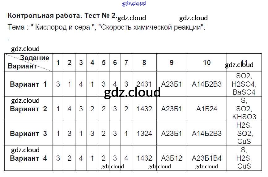 Ответ на задание КР-2. Кислород и сера. Скорость химической реакции Тесты Химия за 9 (девятый) класс Боровских УМК 2013