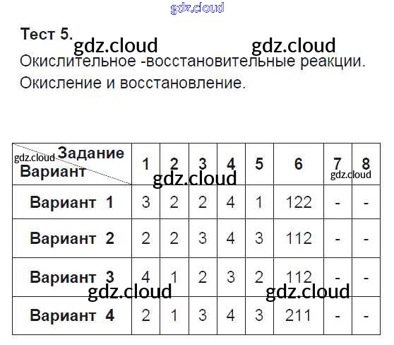 Ответ на задание Тест-5. Окисление и восстановление Тесты Химия за 9 (девятый) класс Боровских УМК 2013