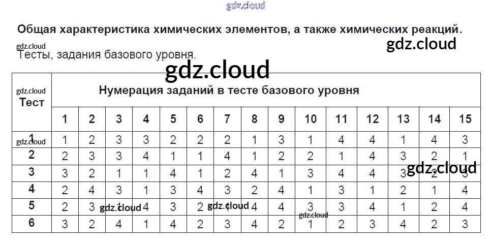 Ответ на задание №1. Общая характеристика химических элементов. Задания базового уровня Тесты Химия за 9 (девятый) класс Рябов УМК 2016