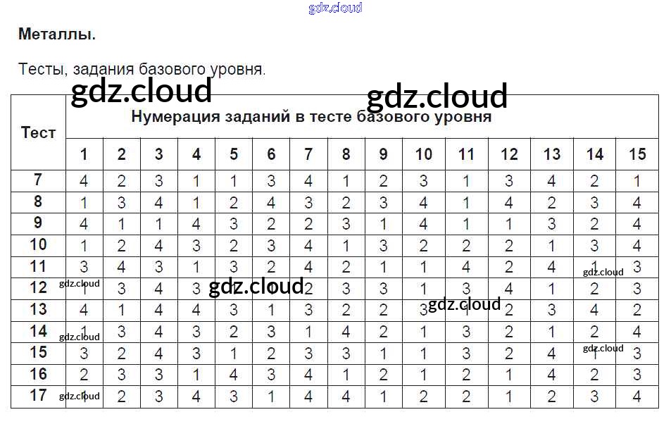 Ответы к теме: Металлы по Химии 9 класс Тесты Рябов УМК Экзамен