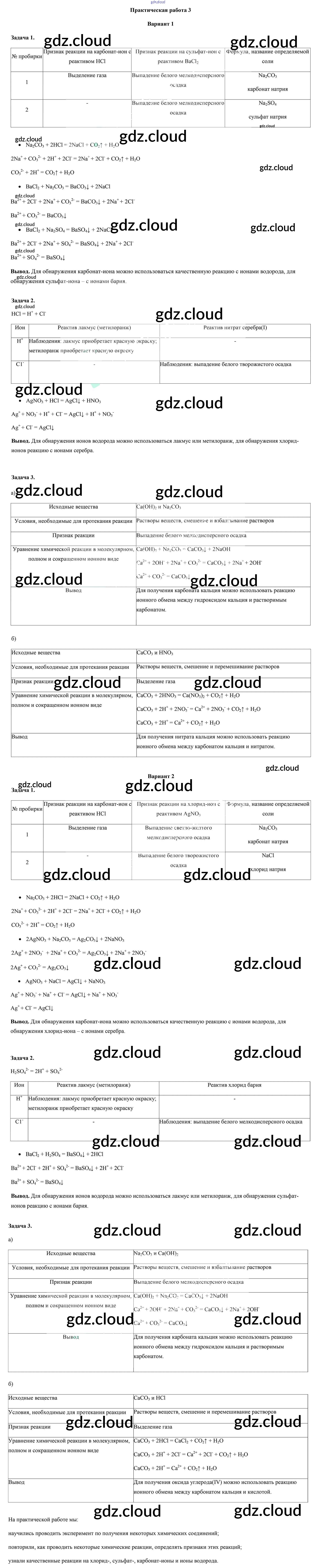 Ответ на задание 3 Тетрадь для практических работ и лабораторных опытов Химия за 9 (девятый) класс Сечко 2016