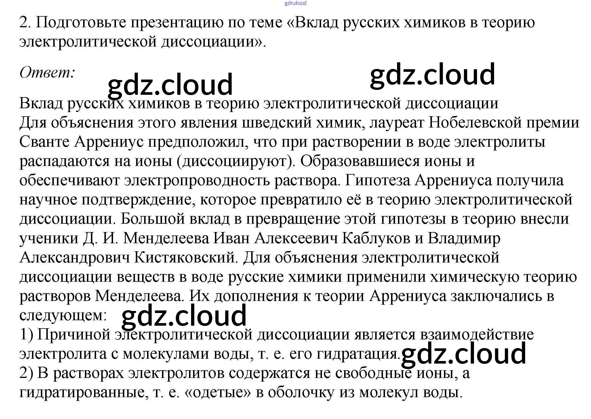 Ответ на задание 2 Учебник Химия за 9 (девятый) класс Габриелян, Остроумов, Сладков 2021