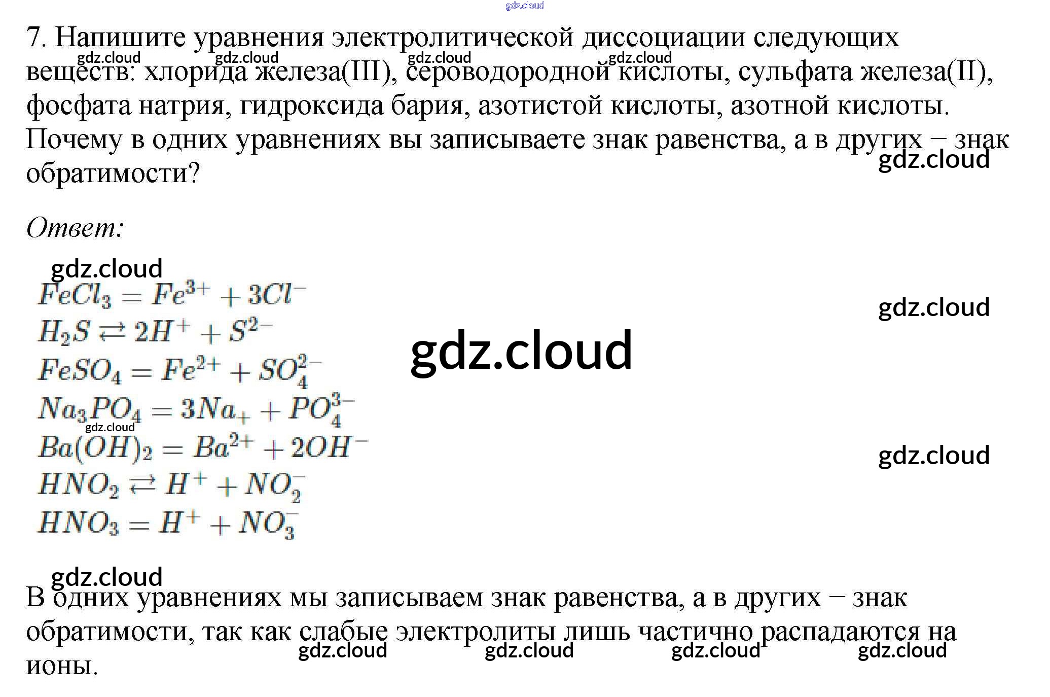 Ответ на задание 7 Учебник Химия за 9 (девятый) класс Габриелян, Остроумов, Сладков 2021 ФГОС онлайн и без номера телефона.