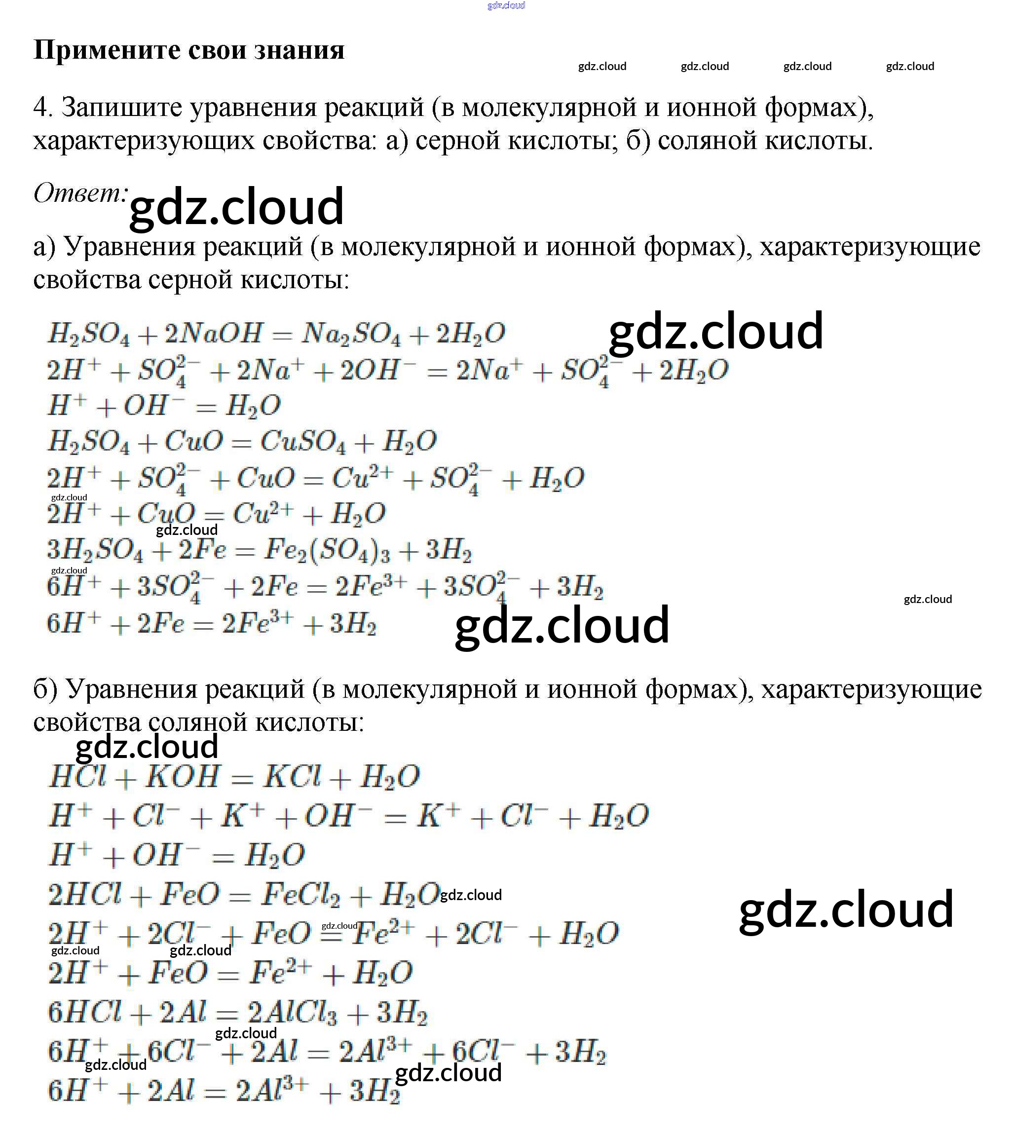 Ответ на задание 4 Учебник Химия за 9 (девятый) класс Габриелян, Остроумов, Сладков 2021 ФГОС онлайн и без номера телефона.