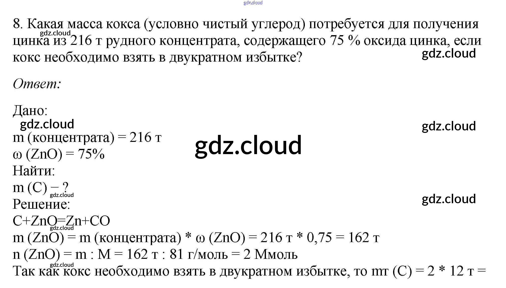 Ответ на задание 8 Учебник Химия за 9 (девятый) класс Габриелян, Остроумов, Сладков 2021 ФГОС онлайн и без номера телефона.