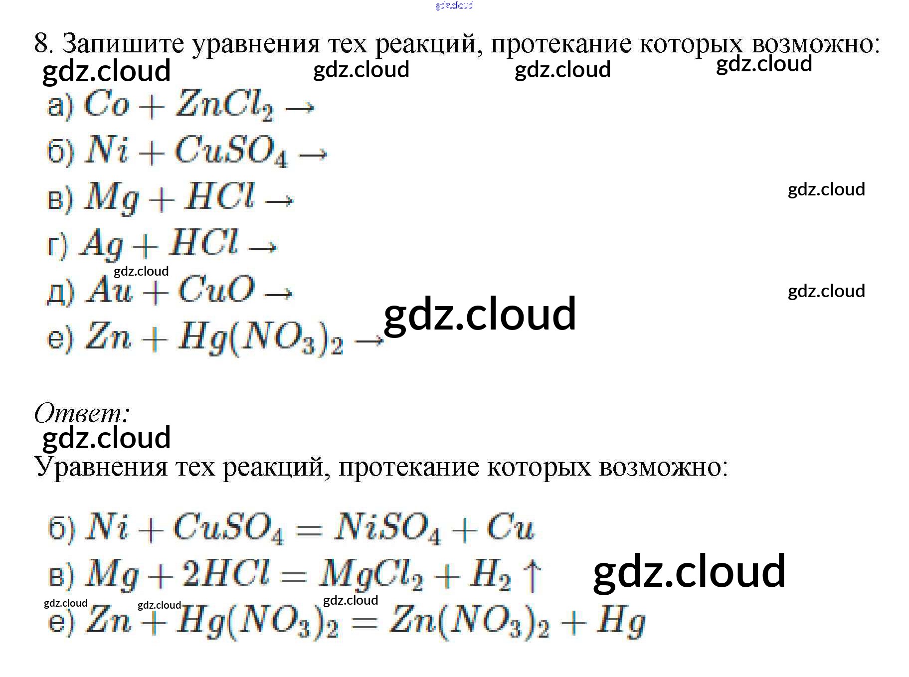 Ответ на задание 8 Учебник Химия за 9 (девятый) класс Габриелян, Остроумов, Сладков 2021 ФГОС онлайн и без номера телефона.