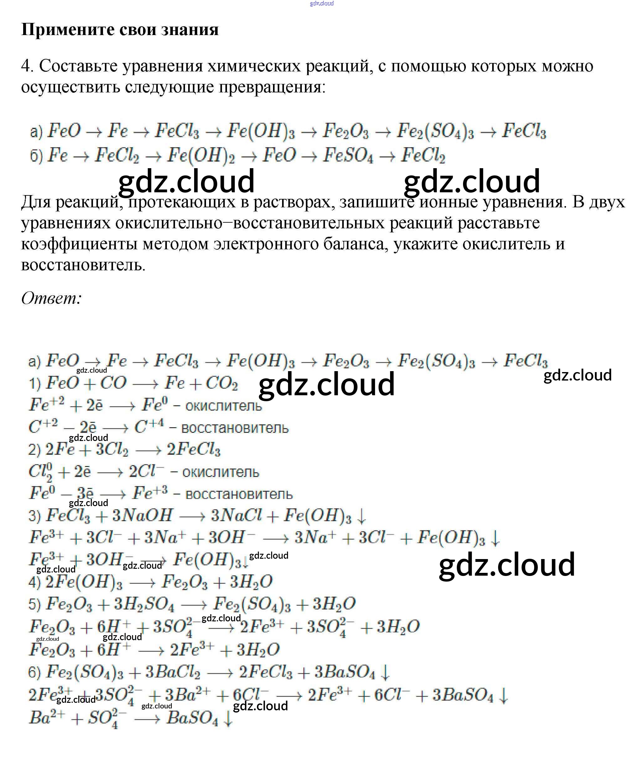 Ответ на задание 4 Учебник Химия за 9 (девятый) класс Габриелян, Остроумов, Сладков 2021 ФГОС онлайн и без номера телефона.