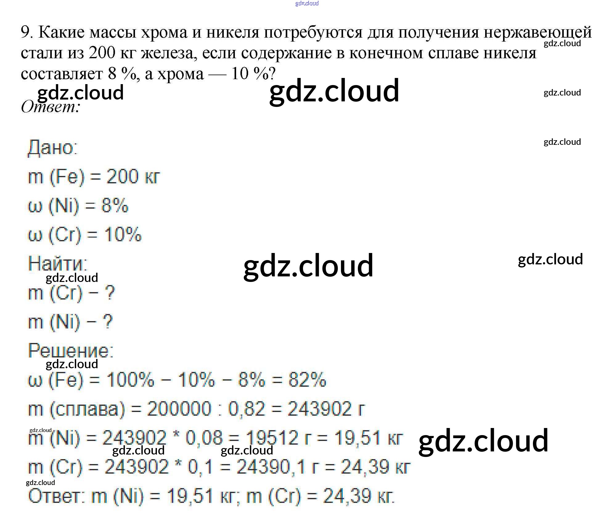 Ответ на задание 9 Учебник Химия за 9 (девятый) класс Габриелян, Остроумов, Сладков 2021 ФГОС онлайн и без номера телефона.