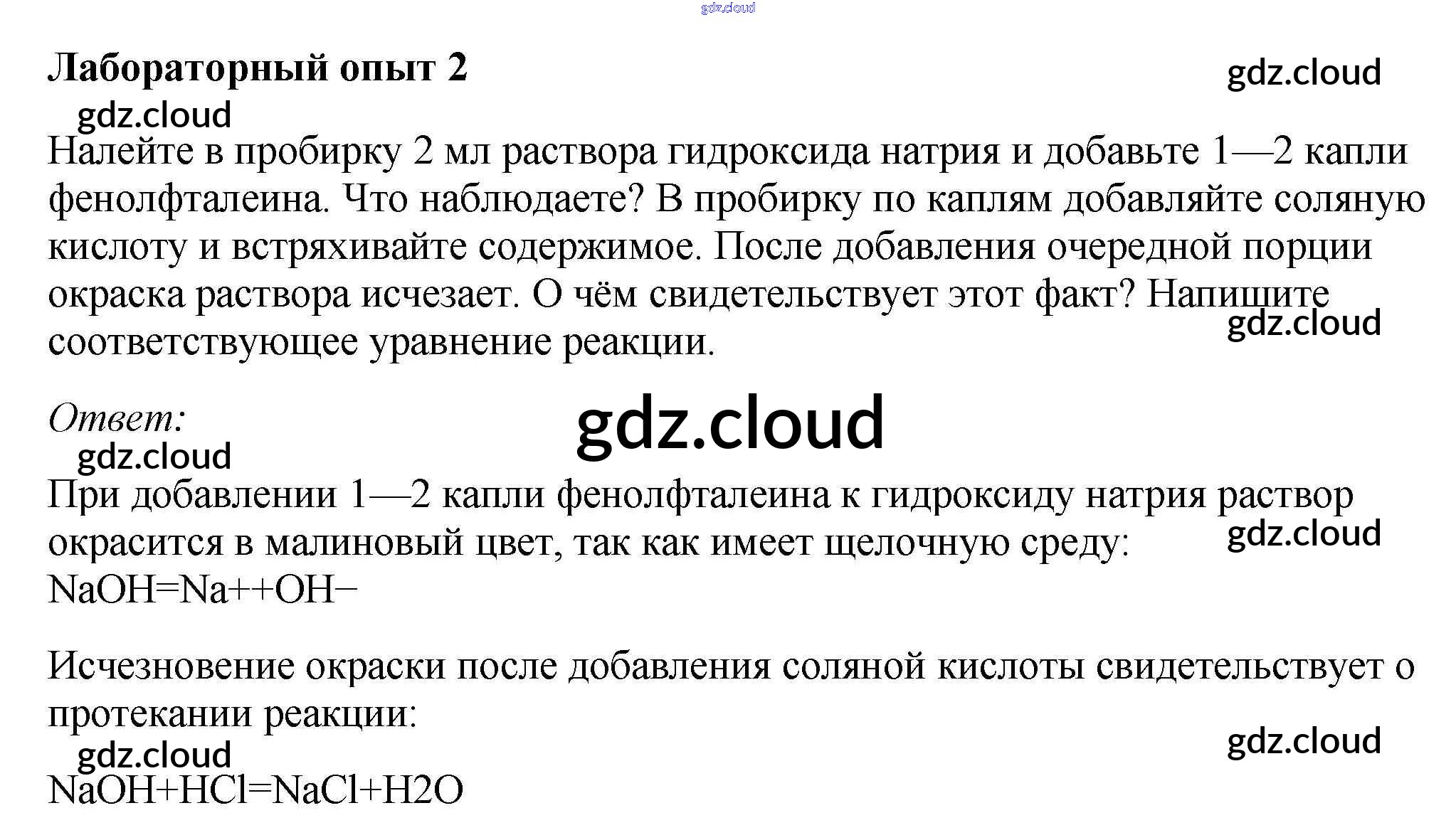 Ответы к лабораторным опытам по Химии 9 класс Учебник Габриелян Просвещение