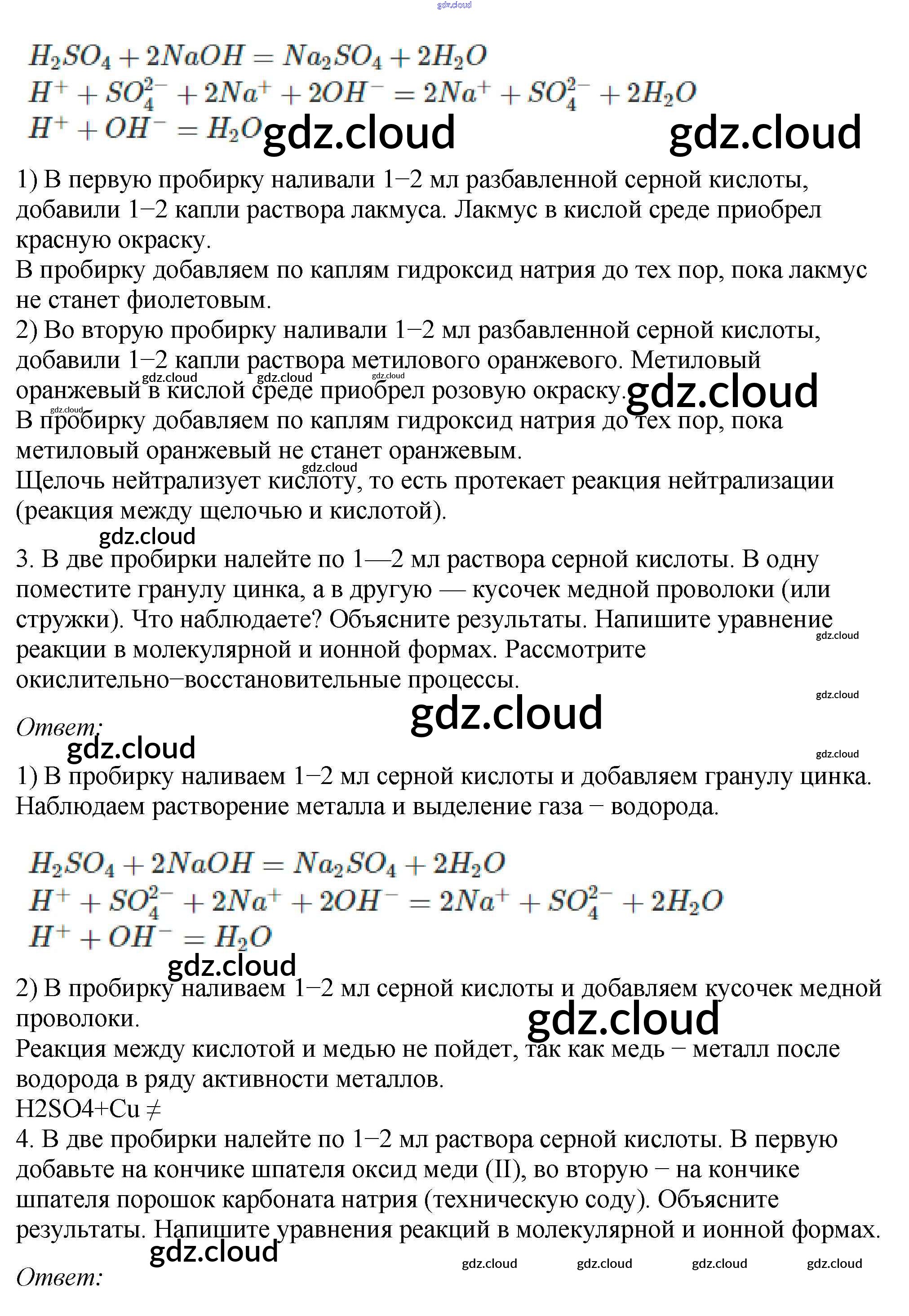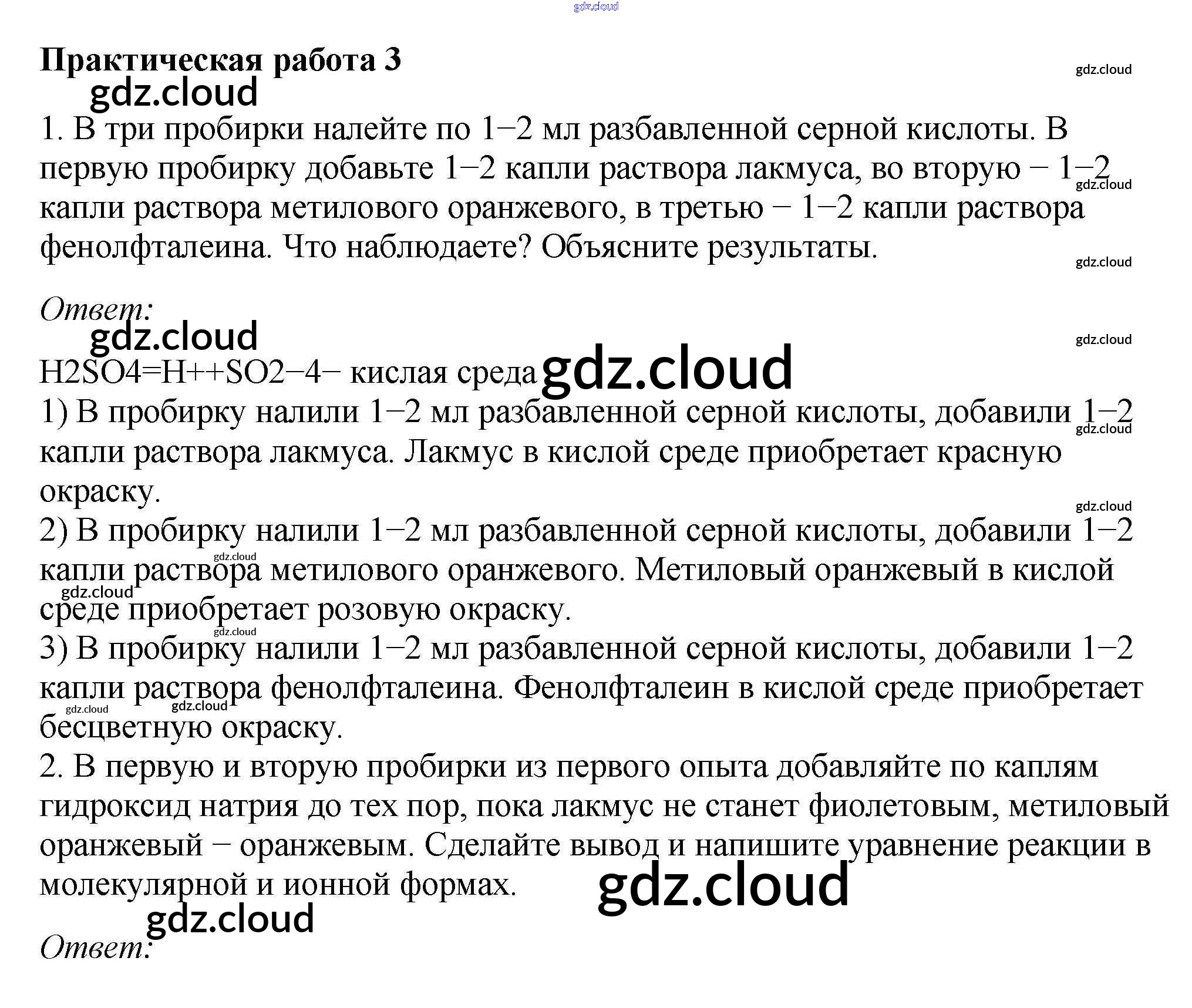 Ответы к практическим работам по Химии 9 класс Учебник Габриелян Просвещение