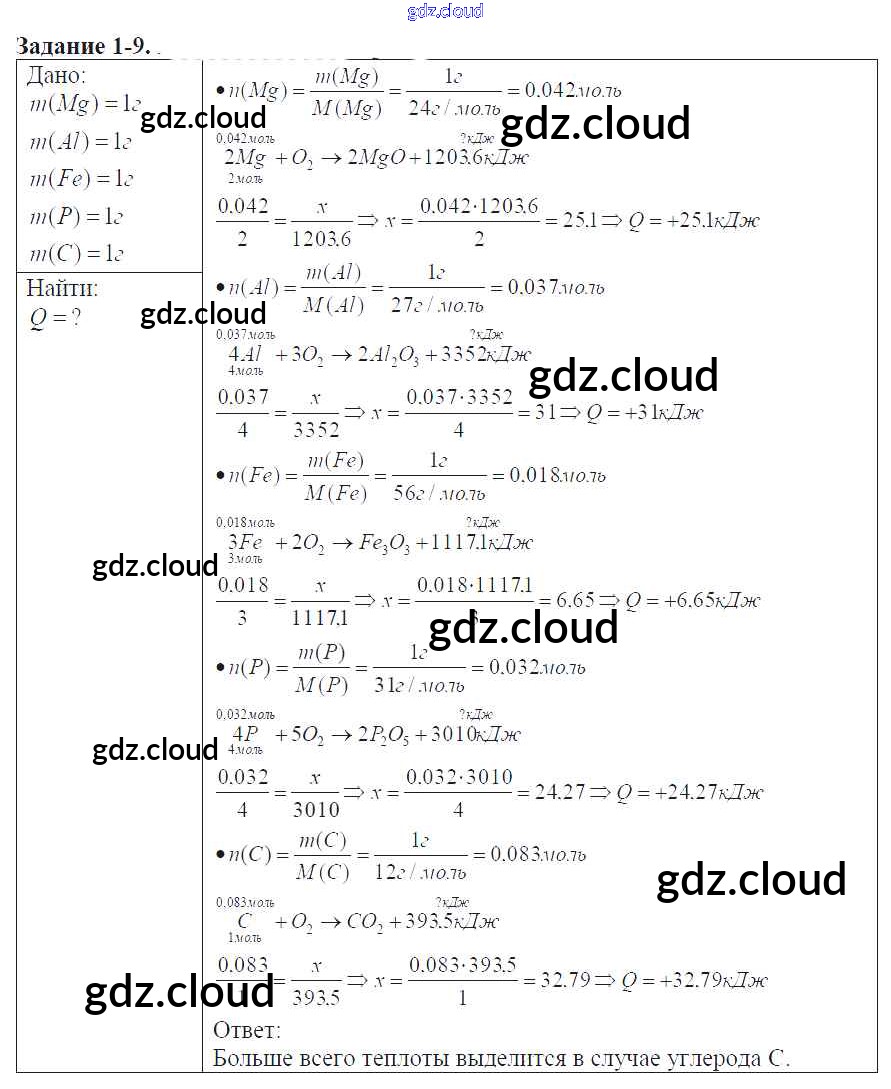 Ответ на задание 1-9 Задачник Химия за 9 (девятый) класс Кузнецова, Левкин Алгоритм успеха 2015