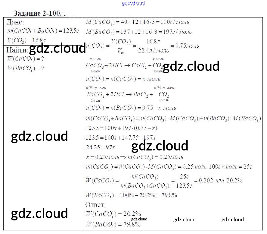 Ответ на задание 2-100 Задачник Химия за 9 (девятый) класс Кузнецова, Левкин Алгоритм успеха 2015