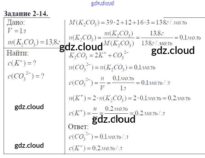Ответ на задание 2-14 Задачник Химия за 9 (девятый) класс Кузнецова, Левкин Алгоритм успеха 2015
