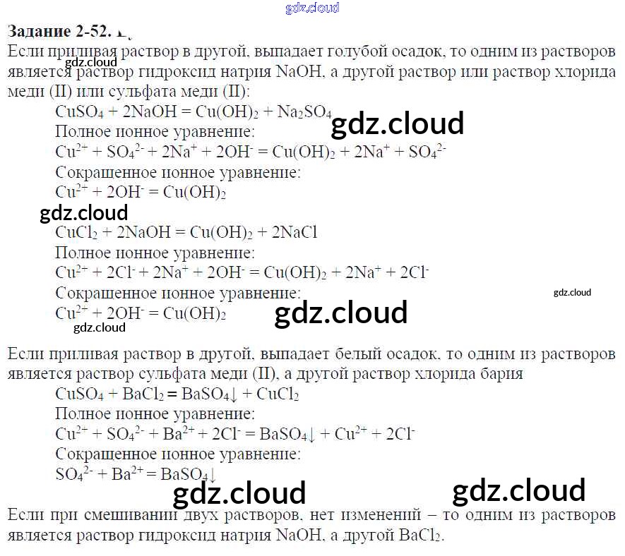 Ответ на задание 2-52 Задачник Химия за 9 (девятый) класс Кузнецова, Левкин Алгоритм успеха 2015