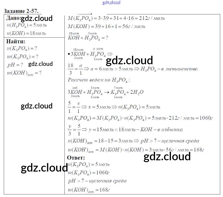 Ответ на задание 2-57 Задачник Химия за 9 (девятый) класс Кузнецова, Левкин Алгоритм успеха 2015