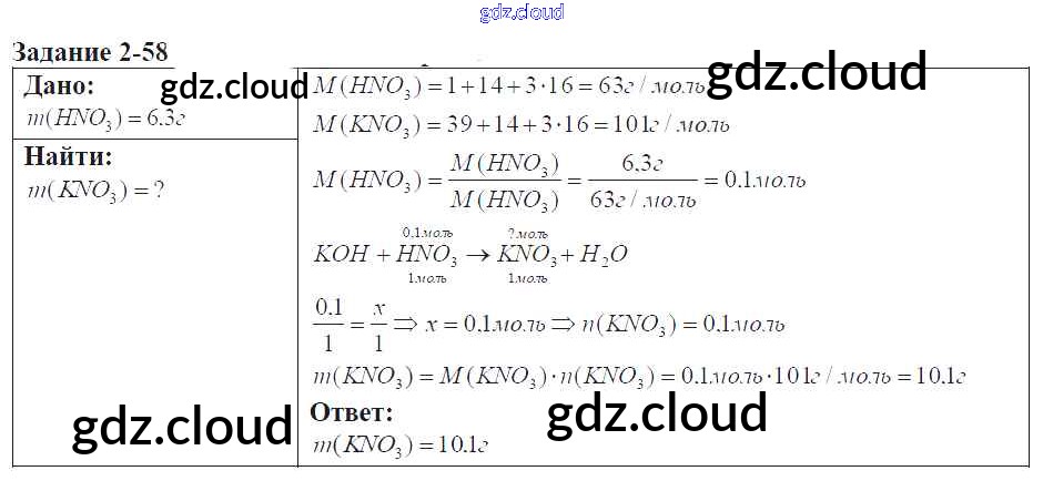 Ответ на задание 2-58 Задачник Химия за 9 (девятый) класс Кузнецова, Левкин Алгоритм успеха 2015