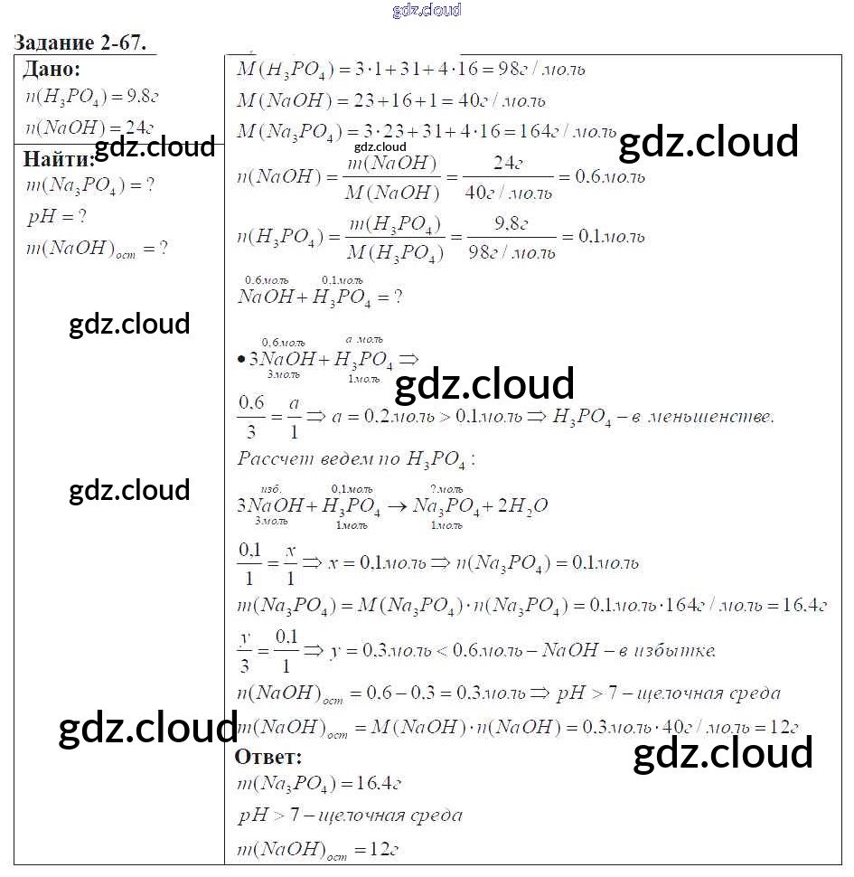 Ответ на задание 2-67 Задачник Химия за 9 (девятый) класс Кузнецова, Левкин Алгоритм успеха 2015