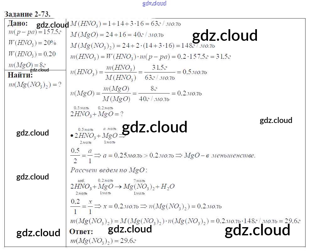 Ответ на задание 2-73 Задачник Химия за 9 (девятый) класс Кузнецова, Левкин Алгоритм успеха 2015
