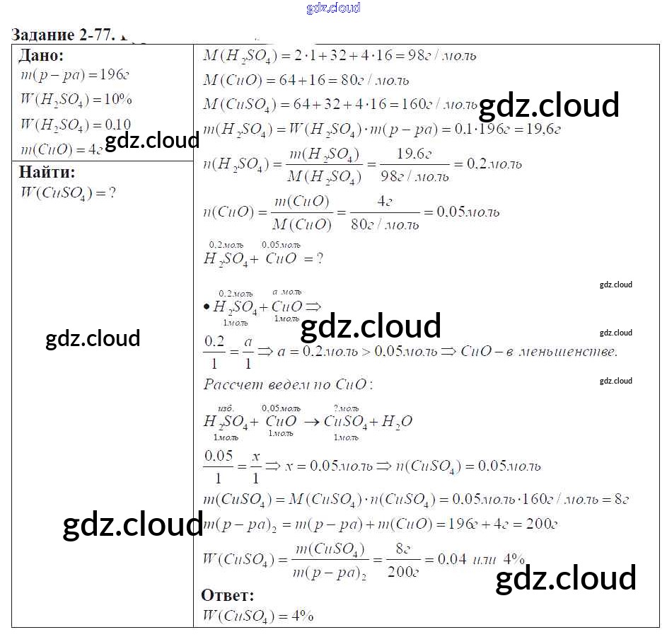 Ответ на задание 2-77 Задачник Химия за 9 (девятый) класс Кузнецова, Левкин Алгоритм успеха 2015