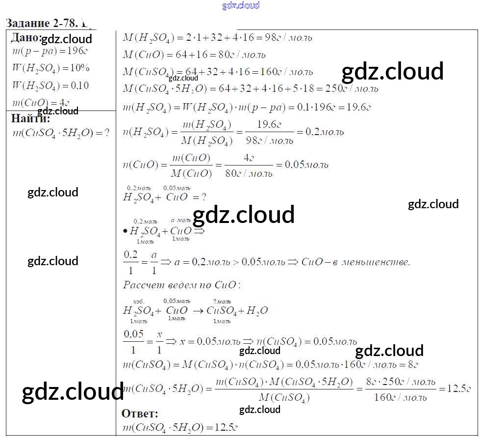Ответ на задание 2-78 Задачник Химия за 9 (девятый) класс Кузнецова, Левкин Алгоритм успеха 2015