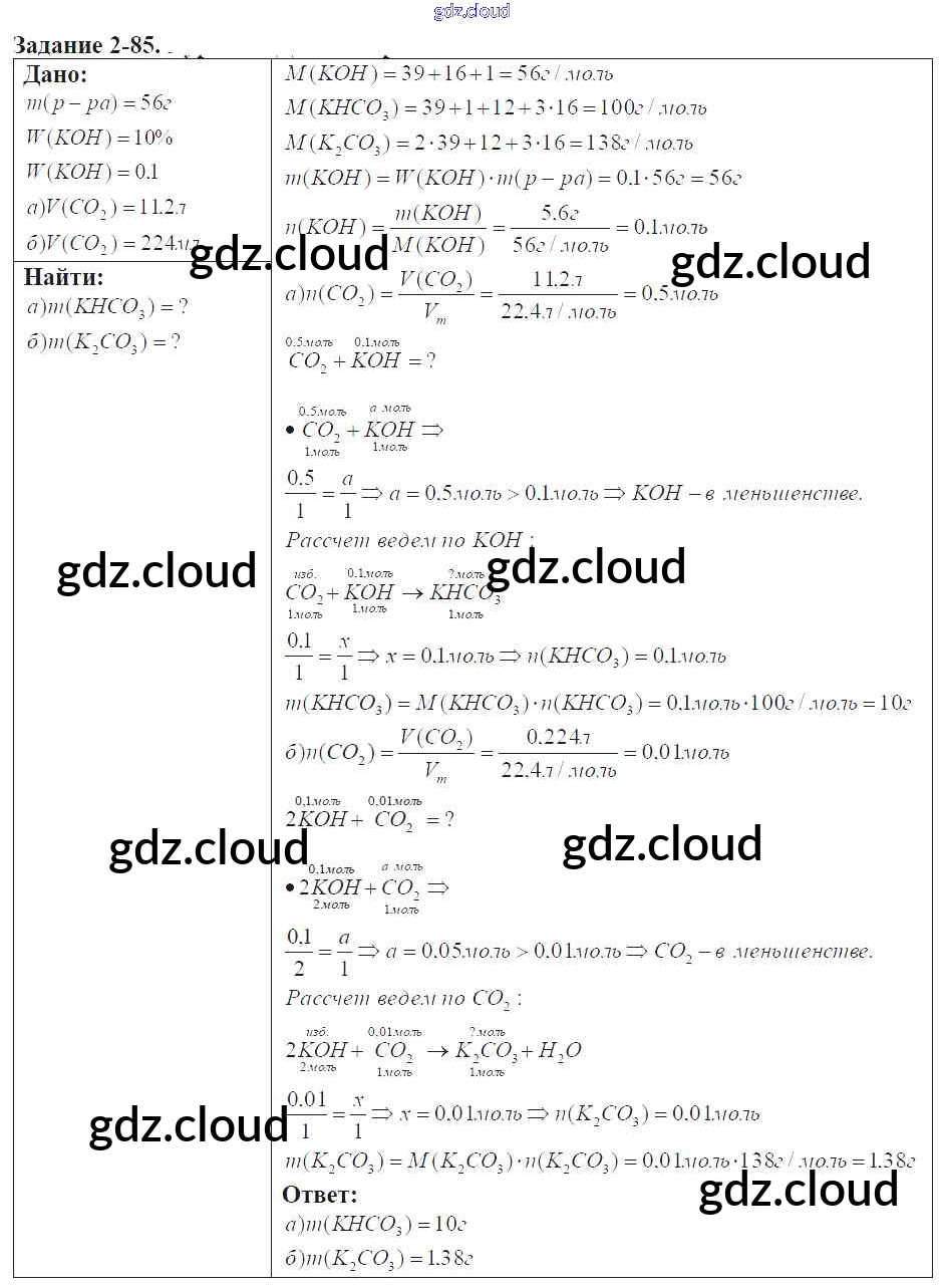 Ответ на задание 2-85 Задачник Химия за 9 (девятый) класс Кузнецова, Левкин Алгоритм успеха 2015