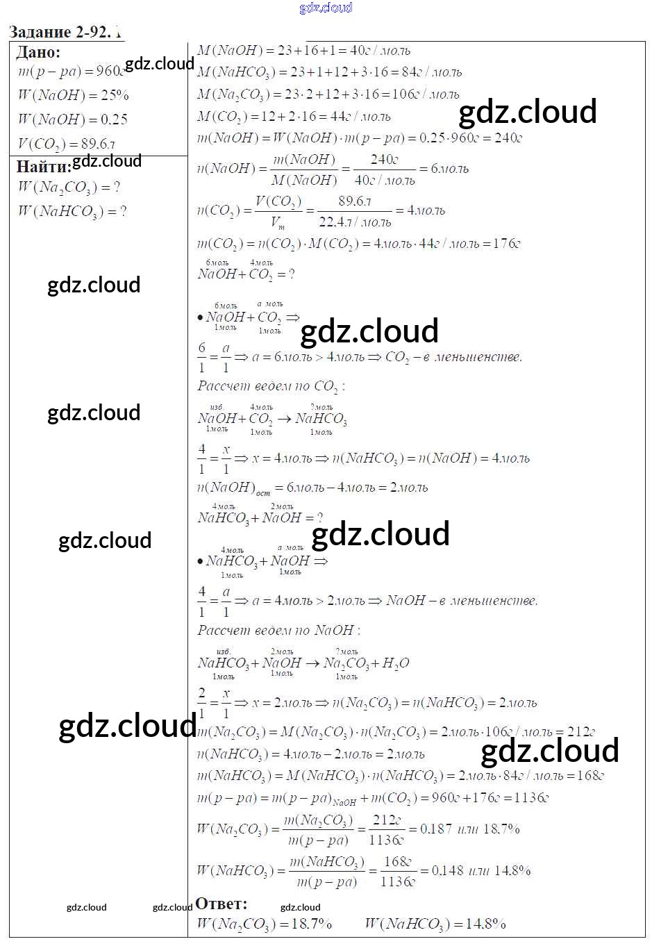Ответ на задание 2-92 Задачник Химия за 9 (девятый) класс Кузнецова, Левкин Алгоритм успеха 2015