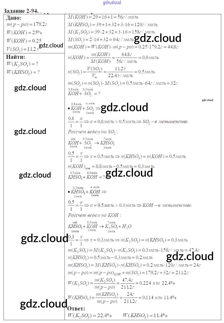 Ответ на задание 2-94 Задачник Химия за 9 (девятый) класс Кузнецова, Левкин Алгоритм успеха 2015