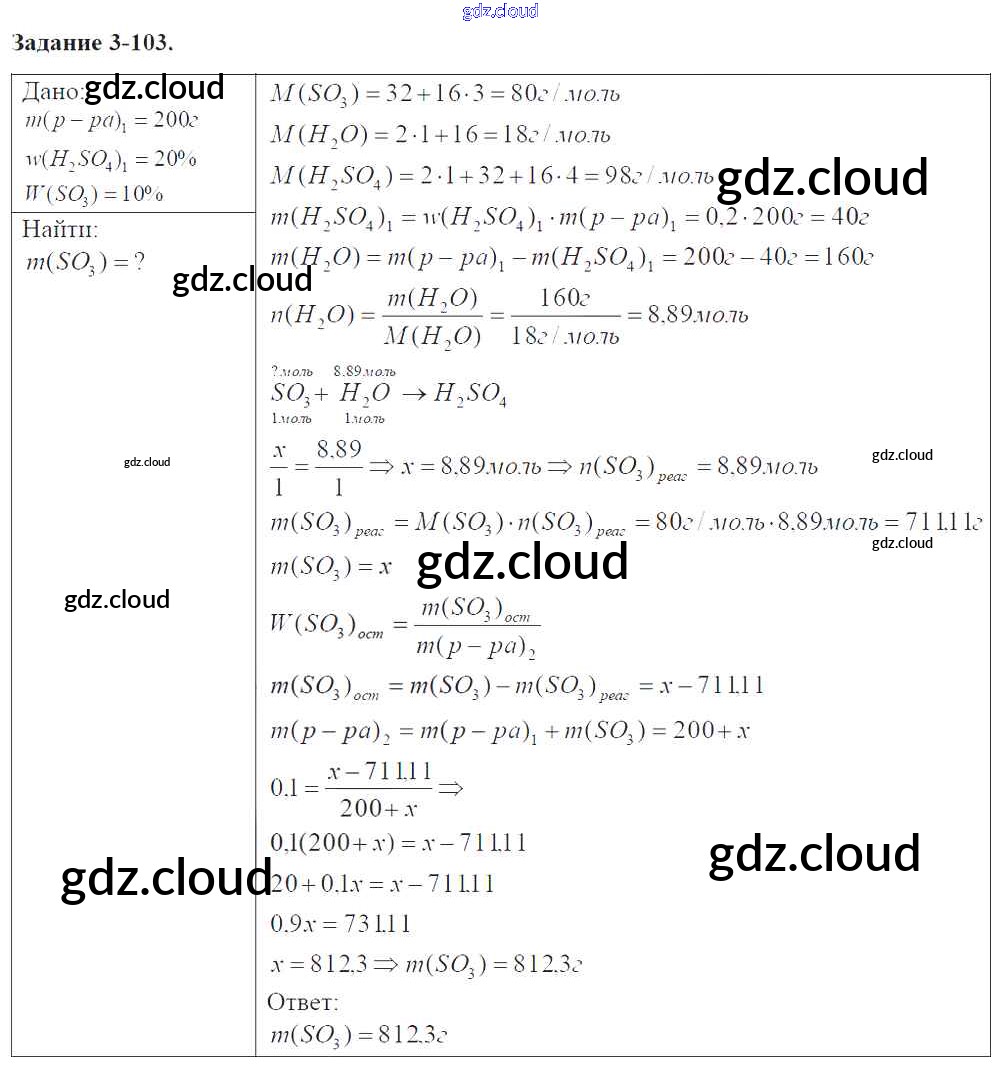 Ответ на задание 3-103 Задачник Химия за 9 (девятый) класс Кузнецова, Левкин Алгоритм успеха 2015