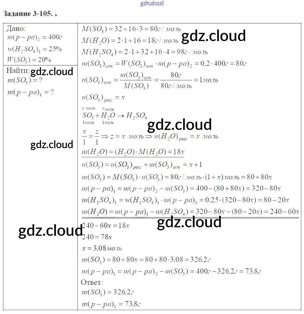Ответ на задание 3-105 Задачник Химия за 9 (девятый) класс Кузнецова, Левкин Алгоритм успеха 2015