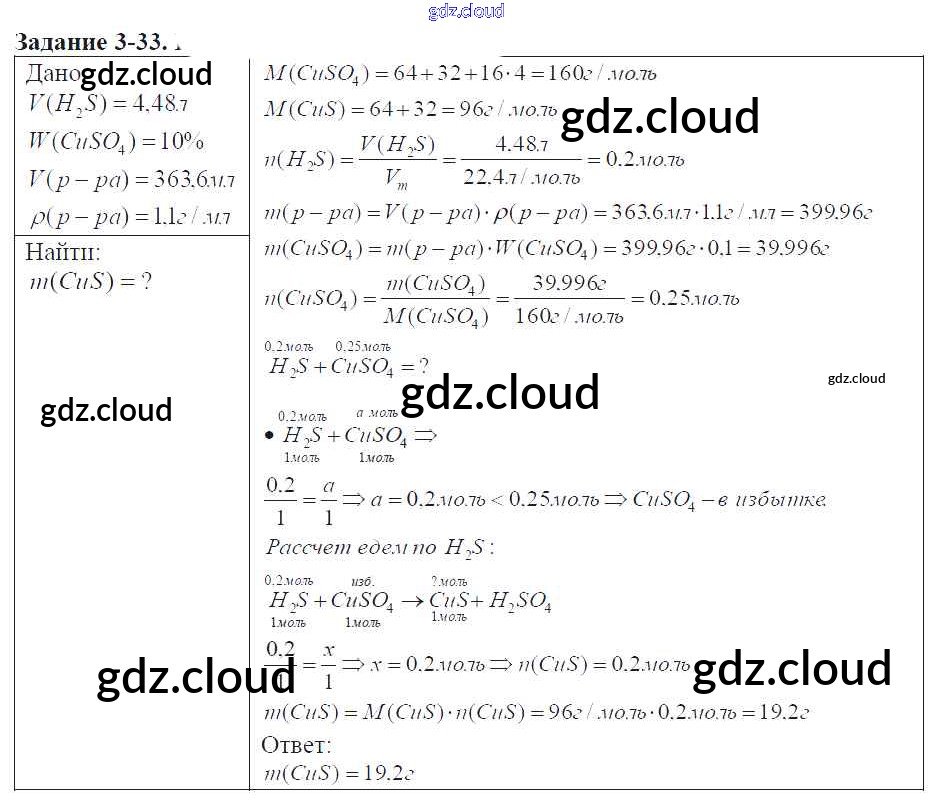 Ответ на задание 3-33 Задачник Химия за 9 (девятый) класс Кузнецова, Левкин Алгоритм успеха 2015