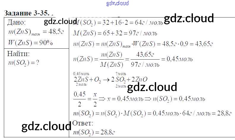 Ответ на задание 3-35 Задачник Химия за 9 (девятый) класс Кузнецова, Левкин Алгоритм успеха 2015