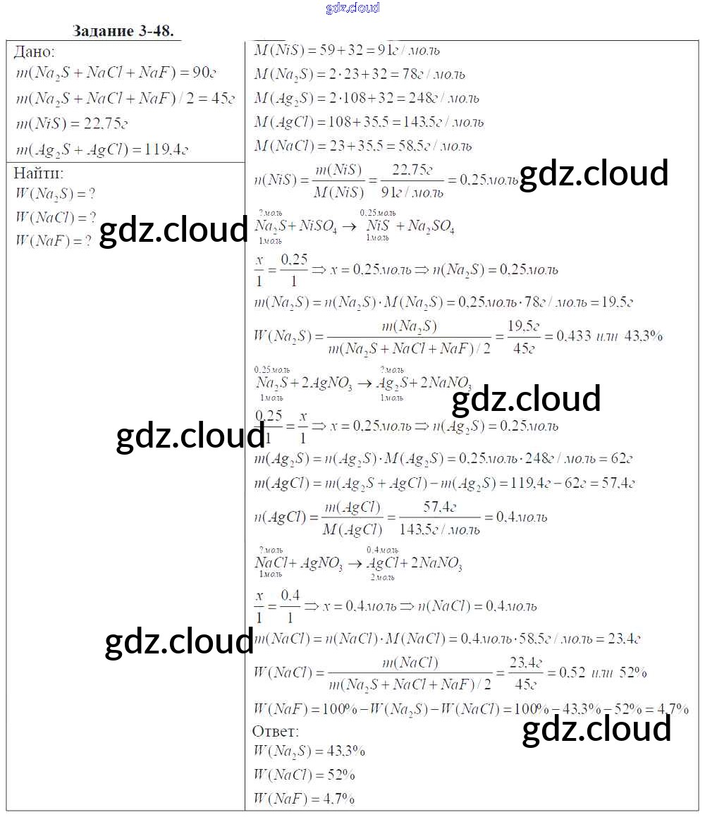 Ответ на задание 3-48 Задачник Химия за 9 (девятый) класс Кузнецова, Левкин Алгоритм успеха 2015
