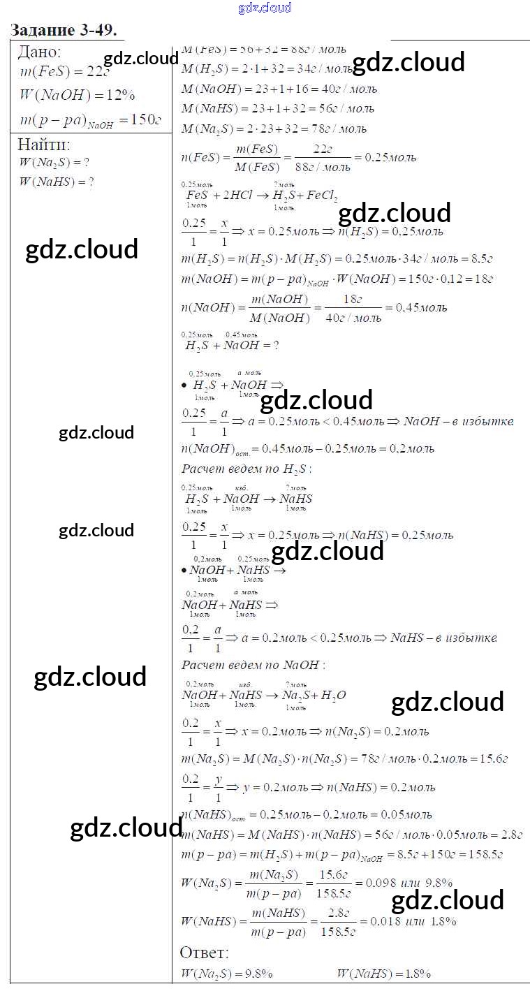 Ответ на задание 3-49 Задачник Химия за 9 (девятый) класс Кузнецова, Левкин Алгоритм успеха 2015