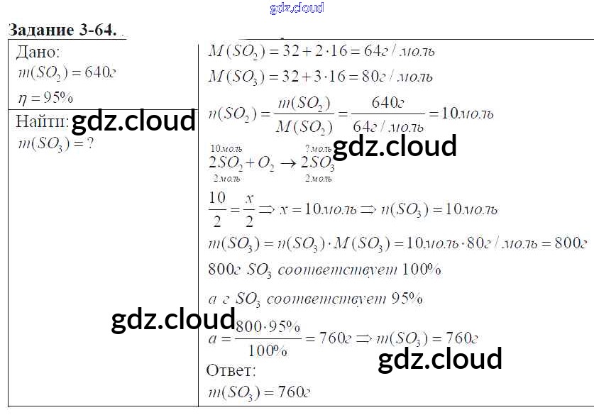 Ответ на задание 3-64 Задачник Химия за 9 (девятый) класс Кузнецова, Левкин Алгоритм успеха 2015