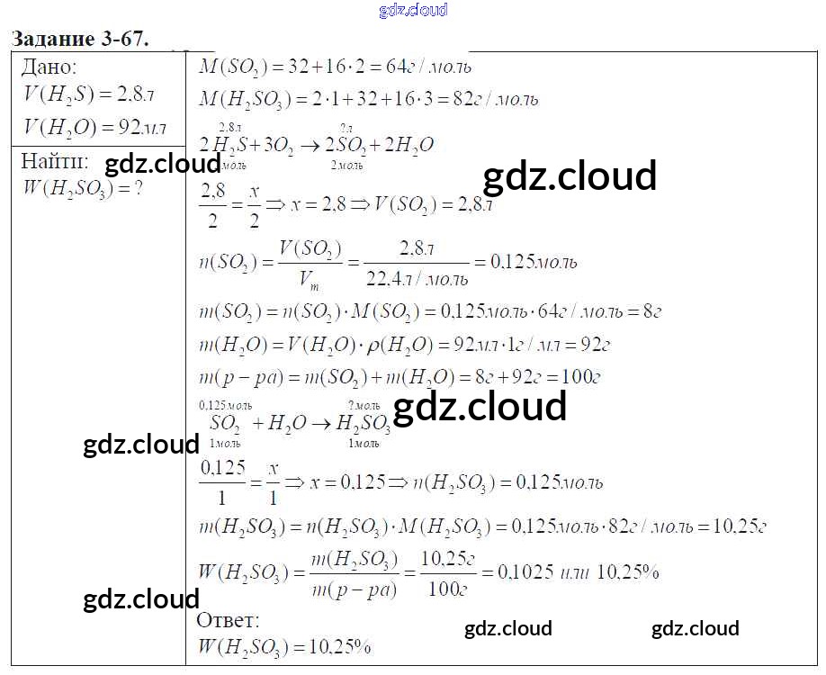 Ответ на задание 3-67 Задачник Химия за 9 (девятый) класс Кузнецова, Левкин Алгоритм успеха 2015