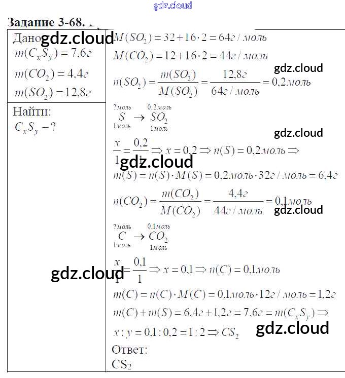 Ответ на задание 3-68 Задачник Химия за 9 (девятый) класс Кузнецова, Левкин Алгоритм успеха 2015