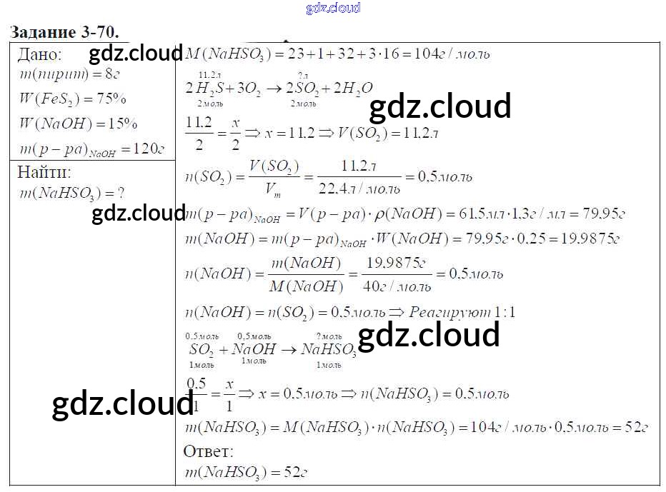 Ответ на задание 3-70 Задачник Химия за 9 (девятый) класс Кузнецова, Левкин Алгоритм успеха 2015