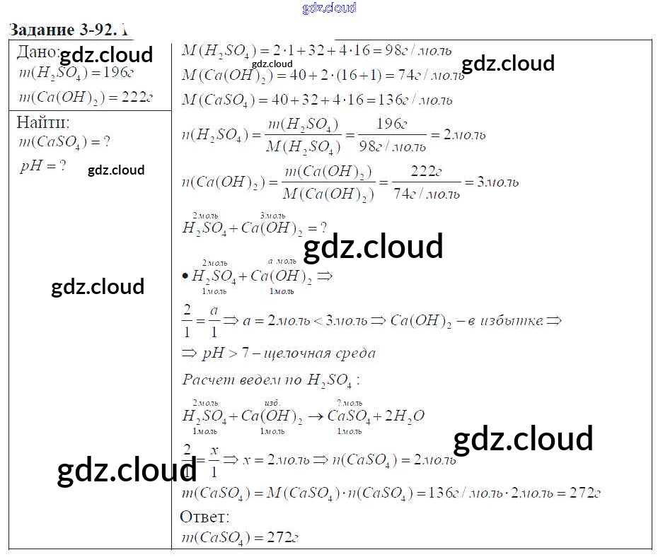 Ответ на задание 3-92 Задачник Химия за 9 (девятый) класс Кузнецова, Левкин Алгоритм успеха 2015