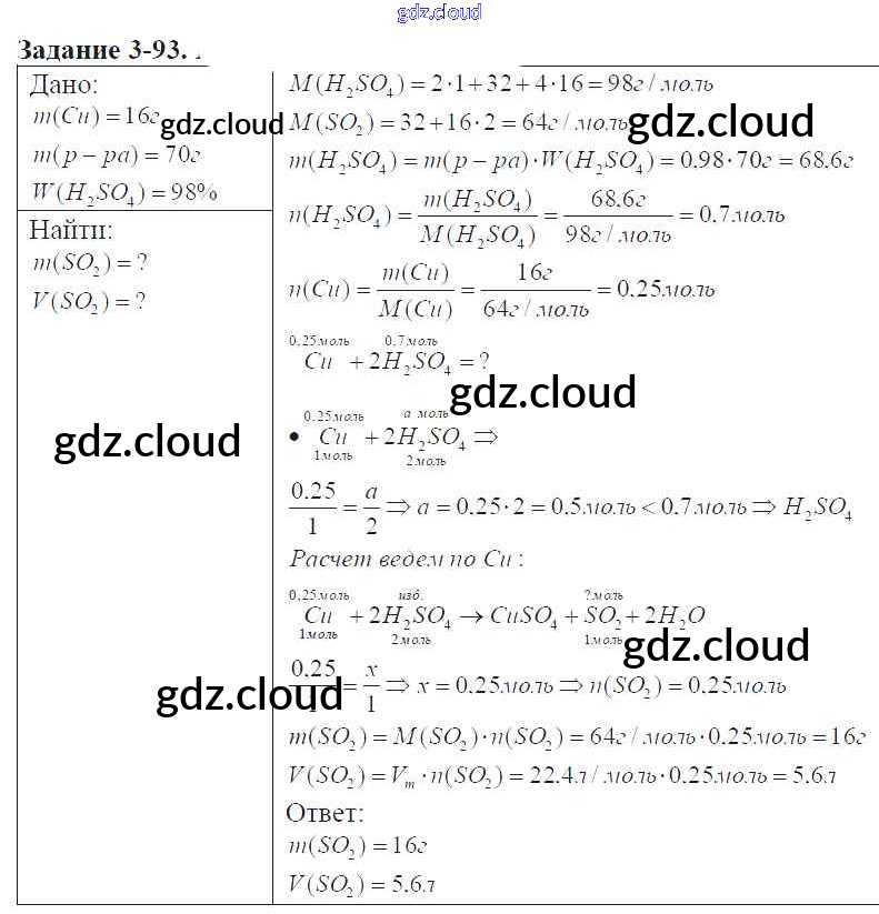Ответ на задание 3-93 Задачник Химия за 9 (девятый) класс Кузнецова, Левкин Алгоритм успеха 2015